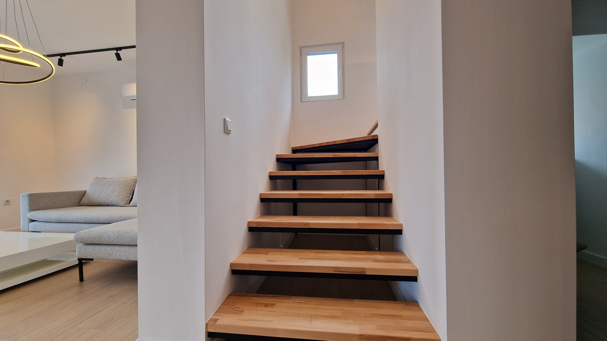 Stan je dvoetažni i dvosoban po strukturi. Na prvoj etaži nalazi se prostrani dnevni boravak s kuhinjom i trpezarijom u jednoj cjelini, balkon, moderno kupatilo sa toaletom, hodnik i praktičan walk-in ormar.