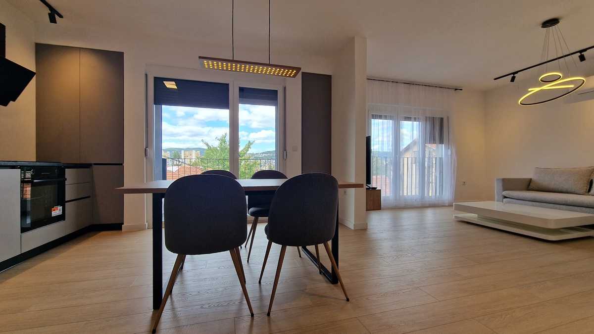 Na mirnoj lokaciji u ulici Pavla Lukača, naselje Vraca, općina Novo Sarajevo, iznajmljuje se prostran i moderno uređen stan površine 85 m². Stan se nalazi u novogradnji i kompletno je novoopremljen, sa pažljivo biranim materijalima i detaljima koji osiguravaju udobnost i kvalitetan boravak.