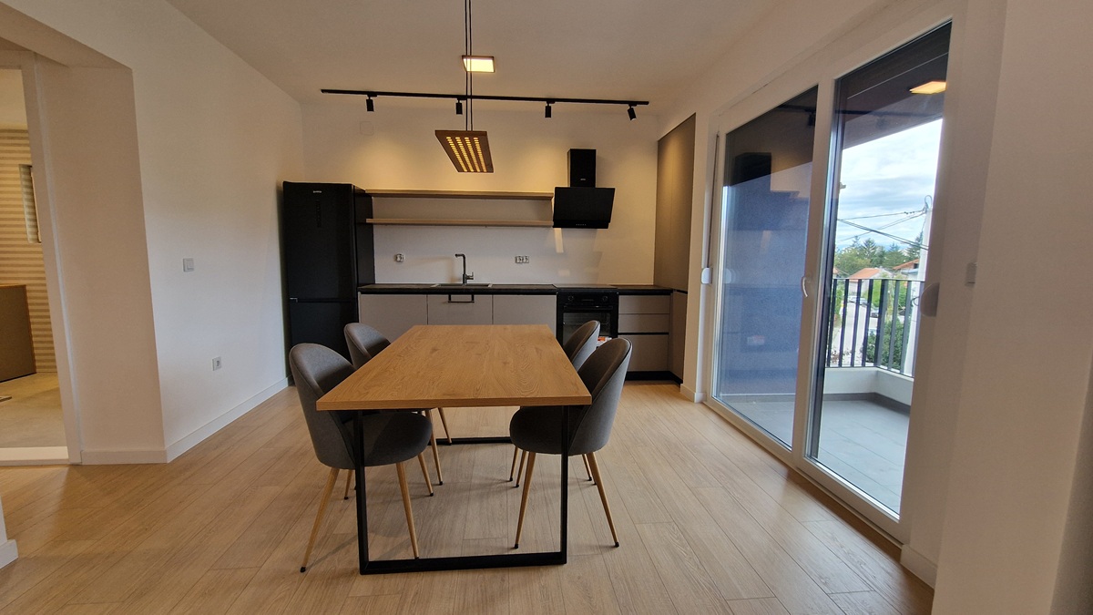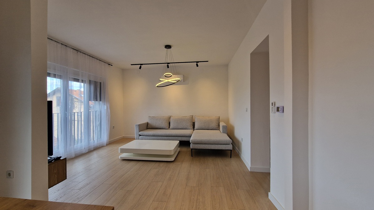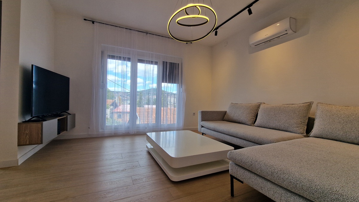 Stan je opremljen potpuno novim namještajem i aparatima, ima podno grijanje na struju, klimatizaciju i savremene sanitarije. Objekat je nov i odlično održavan, a uz stan dolazi i privatno parking mjesto te mogućnost korištenja uređene bašte.
