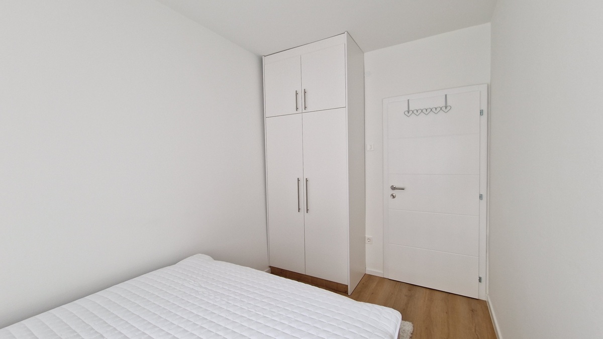Stan se sastoji od dnevne sobe, kuhinje i trpezarije u jednoj cjelini, spavaće sobe, kupatila sa toaletom i hodnika.