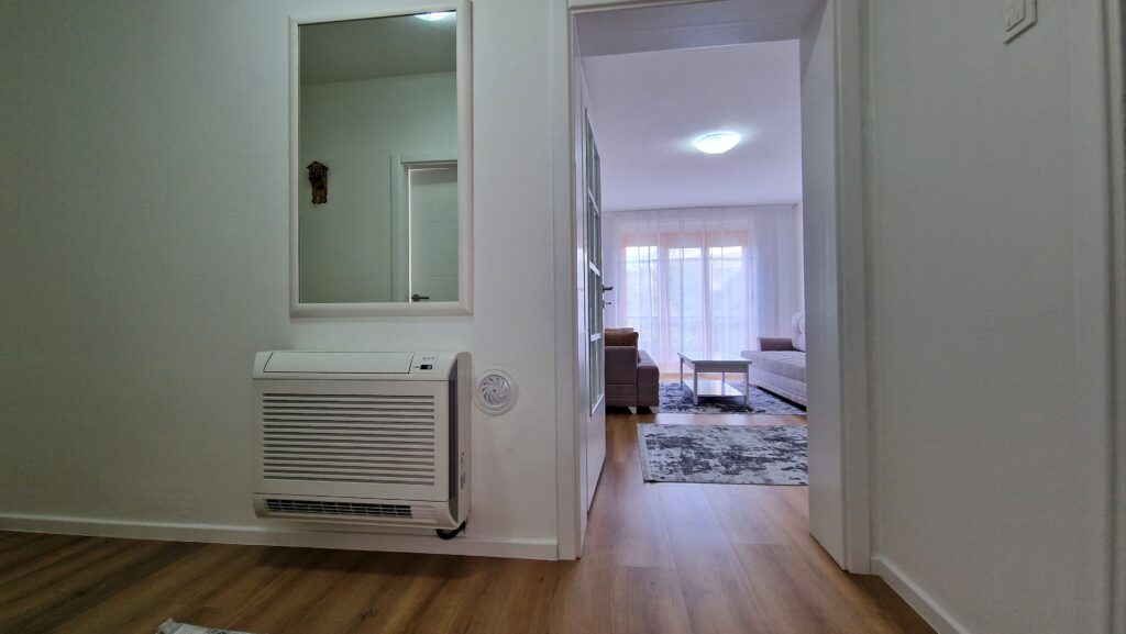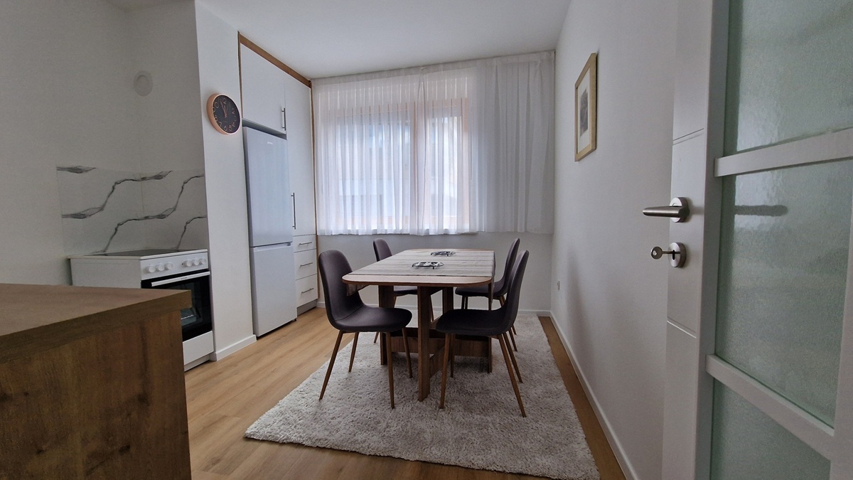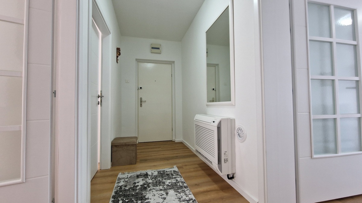 Grijanje je na invertere, ugrađene su vanjske roletne, a kuhinja je opremljena svim potrebnim aparatima uključujući i sušilicu za veš. Stan je dvostrano orijentisan sa dosta svjetlosti i uređen tako da pruža maksimalnu udobnost i funkcionalnost.