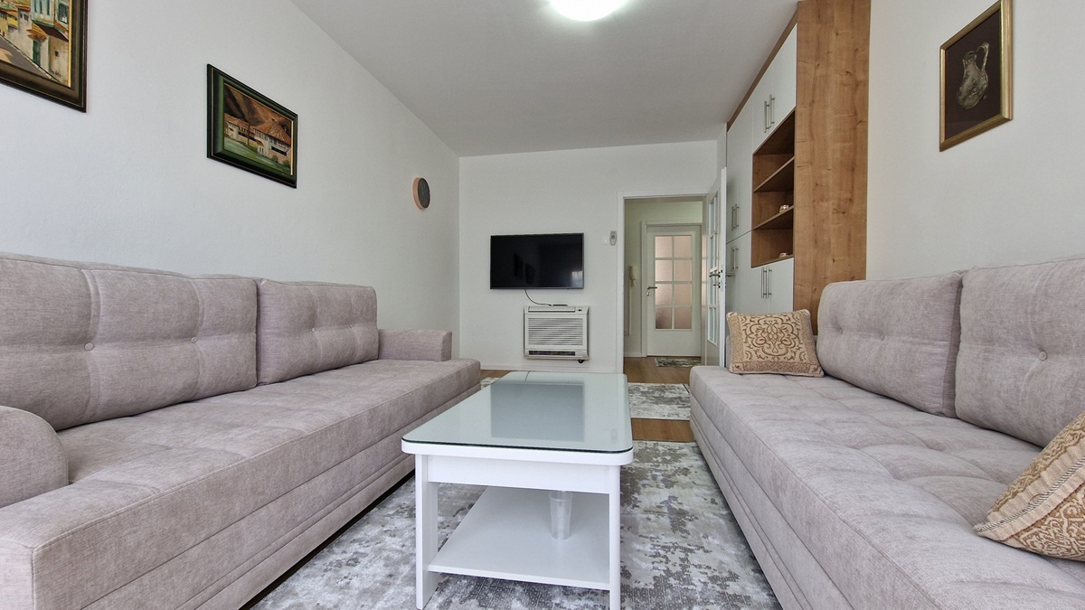 U ulici Antuna Hangija, naselje Koševsko brdo, iznajmljuje se izuzetno lijep, dvosoban stan površine 47 m² smješten na prvom spratu manje stambene zgrade. Stan je potpuno renoviran 2025. godine, sa svim novim instalacijama, namještajem i aparatima najnovije tehnologije.